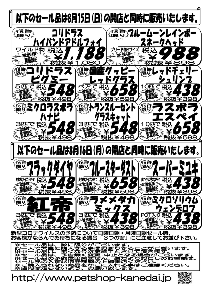8月15日(日)〜生体セール〜