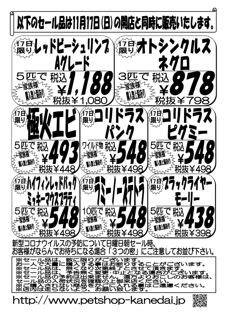 11月17日(日)〜生体セール〜
