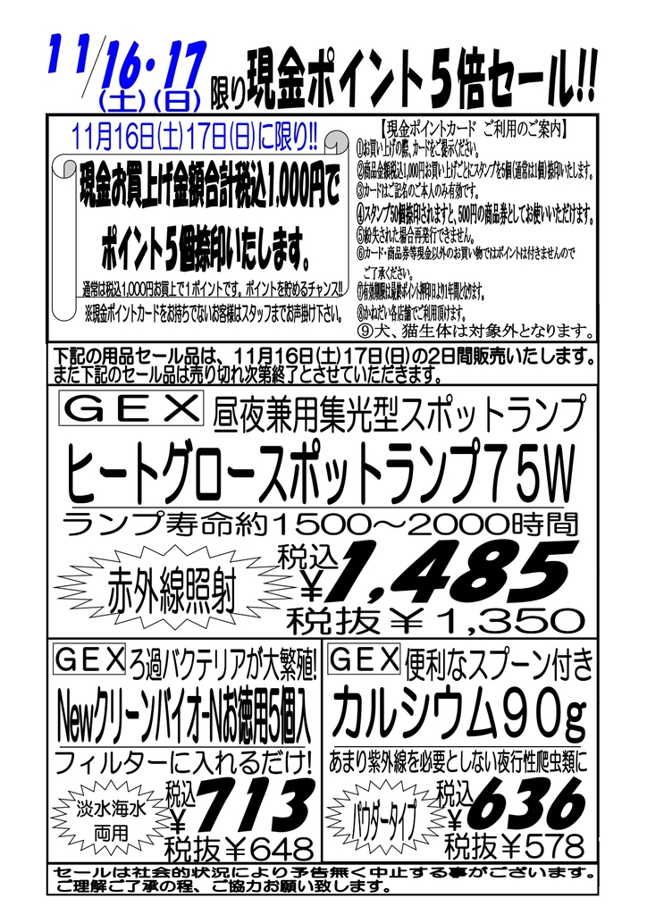11月16日(土)~17日(日)現金ポイント5倍セール!